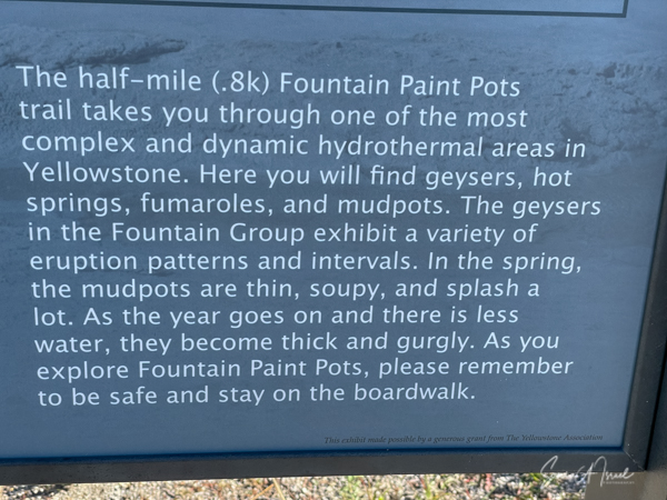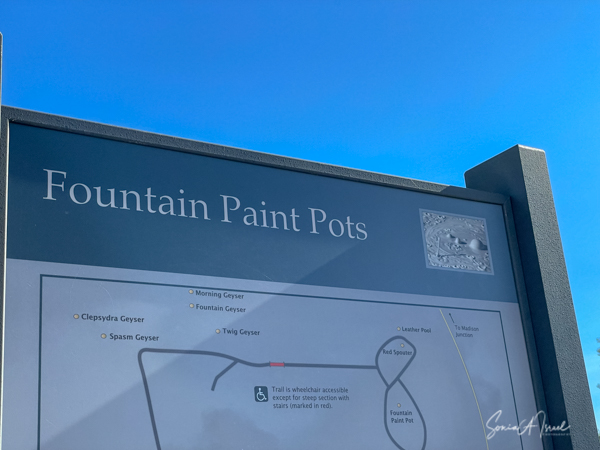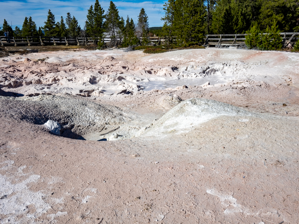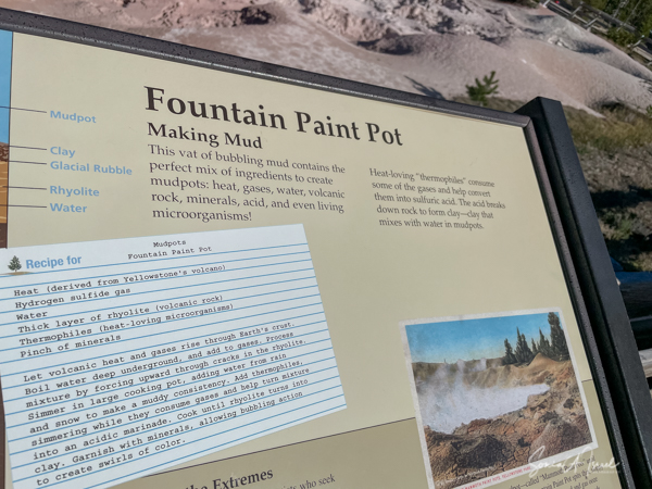 Although I will describe geysers more below, I have to mention that there are several geysers here including Fountain Geyser, Clepsydra Geyser and Morning Geyser. And that is one of the amazing things about the Fountain Paint Pots â you can find hot springs, mud pots (thermal areas where water-saturated sediment, similar to clay, is affected by super-heated steam below. Rising steam forces its way upwards through the mud and ground water, bursting upwards sending showers of mud into the air, as if in a small explosion), fumaroles (steam vent, like a hot spring but with no water) and geysers all in the half-mile loop.