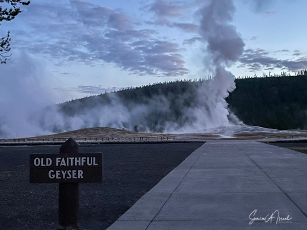 I have seen many geysers around the world, so I must admit Old Faithful just felt like one more geyser. But the surroundings were beautiful and there were several other geysers in the vicinity also erupting and that made it special.