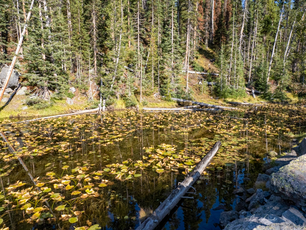 Isa Lake is at 8262 feet above sea level and is a beautiful, clear lake that was reflecting all the leaves above it. It looked like a painting. Besides being beautiful, Isa Lake is the only natural lake in the world that drains into two oceans, and, the only one to do so backwards! I stood there a while, taking pictures of the reflections in the water and just admiring the beauty and the uniqueness of the place.