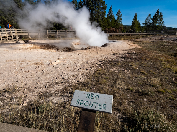 Then there was the actual Fountain Paint Pot which was a classic mud pot with mounds of steam (you can hear Kurt explaining it on the video). And Red Spouter which is a spring that began during the Hebgen Lake earthquake and looks different in different seasons with it being a hissing furmarole in the summer and fall (like when I was here) but spouting red water and mud in the spring and summer. There was Leather Pool which was a deep blue lake. And then there was Fountain Geyser which erupted as we were walking away. The loop ended at the Celestine Pool. Each was beautiful. Each was different. Each was a display of Mother Nature at her best.
