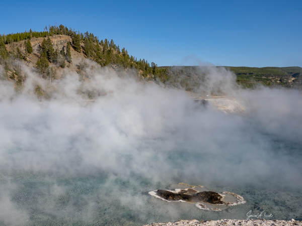 Perhaps one of the things that really brings visitors to Yellowstone, besides the wildlife and the geysers (and yes, I will get to the geysersâŠ.), is the Yellowstone caldera. This is the largest volcanic system in North America. It has been called a supervolcano because it was formed by some very exceptionally large explosive eruptions, the last about 640,000 years ago. And yes, it may blow again, and if it did, it could spew ash for thousands of miles around the US, damaging buildings, smothering crops and shutting down power plants. It would be hard to breath and hard to survive. But it is not expected that there will be another eruption anytime soon. The odds of it happening are considered very low as there have only been three enormous eruptions in history, 2 million years ago, 1 million years ago and, as mentioned, 664,000 years ago. There seem to be millions of years between explosions so for now it seems we are safe.