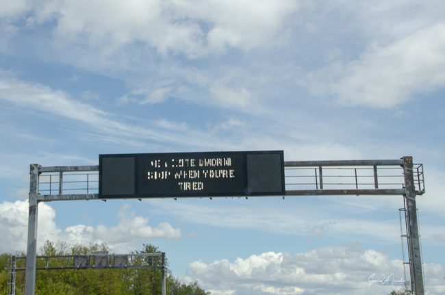 We stopped to pay the toll a few times, as unlike the roads in Slovenia, these are not free. We passed a sign which read, in both Croatian and English, “Stop if you are tired.” I loved it!
