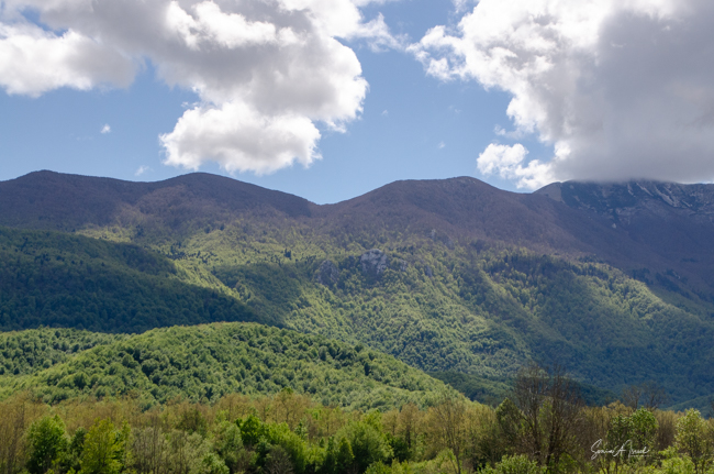 The mountains above us had peaks covered in snow and seemed pointier than the mountains in Slovenia. Trees were everywhere creating a green carpet.