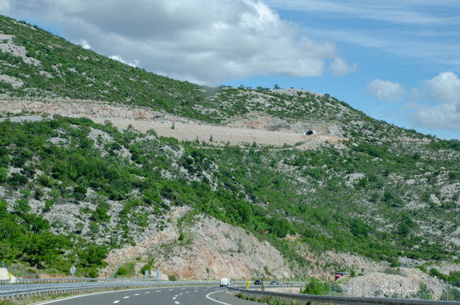 We drove through one tunnel after another. The longest was the Sveti Rok tunnel at about 3.5 mile. And then we crisscrossed the mountain making our way back down the other side.