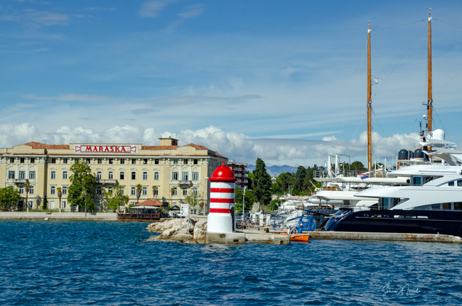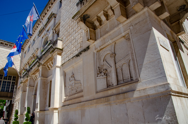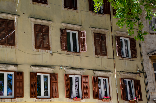 The next morning, Tamara, our guide, met us in the lobby of our hotel and we began our official walking tour. (Note: if you want a great guide, here is Tamara’s contact info: tramonto.guides@gmail.com) We started by walking down the promenade at the water’s edge. The promenade, called Riva, is a favorite spot for the locals. There are even songs written about it. Today it has green parks with flowers and palm trees. But in the past it was lined with Renaissance homes and city walls which blocked the ocean air. After the Allies attacked and all those homes were destroyed, the city decided to built parks instead which let in the light and the air. Now it is filled with cafes and benches (which were all being painted in preparation for high season) and parks and people sitting and enjoying life. As Tamara explained, Dalmatians like to enjoy life. Others may call them lazy, but they enjoy being easy going. Their favorite pastime is sitting and drinking a large macchiato. And their favorite expression? If you can do it today, leave it for tomorrow.