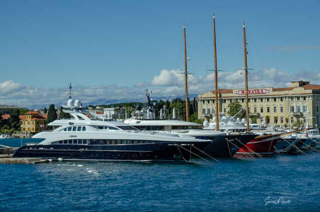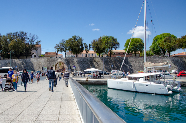 The name is fitting as this gate, on the north side of Zadar, is right at the bridge leading to the other side, the more residential area of Zadar. We walked out of the Old City walls and crossed the bridge. The water was a deep blue and was full of boats, both little ones and large yachts.