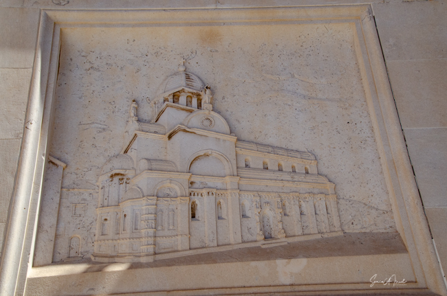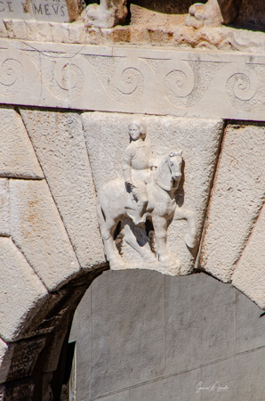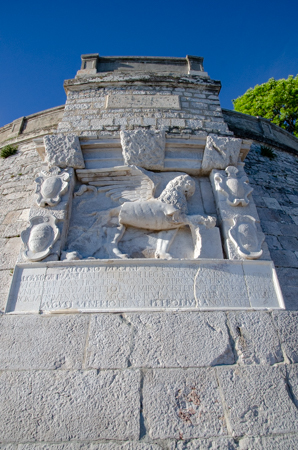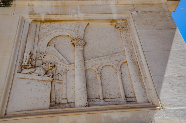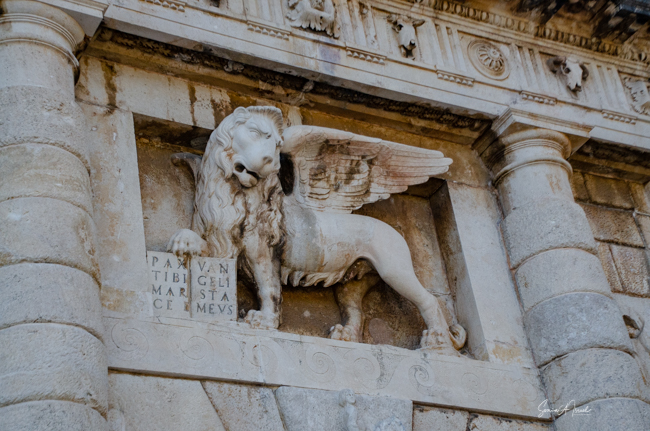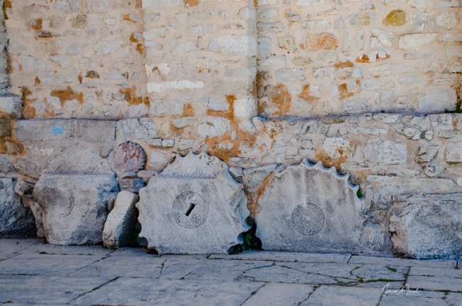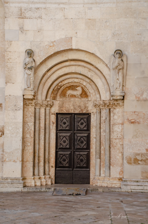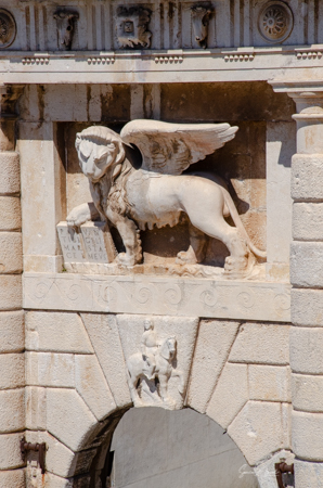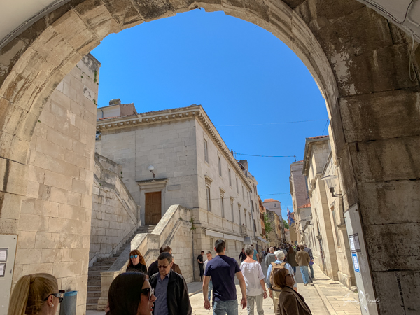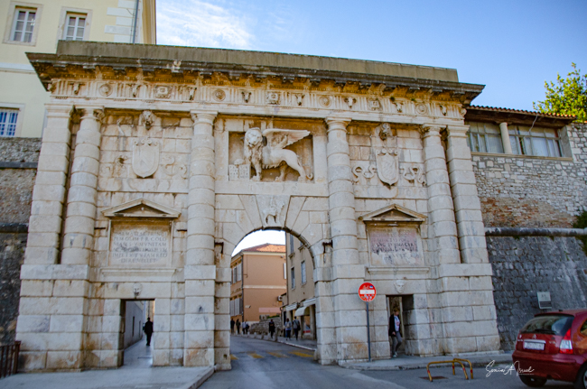 The Land Gate, which sits above the Foša harbor, was once the main entrance for Zadar. It was built by the Venetians in 1543 and has one huge triumphal arch in the center with two smaller arches on either side. At the top of the main arch is a sculpture of the winged lion of St. Mark, (the coat of arms of the Republic of Venice), which acts as a reminder of Venice’s long rule over Zadar. And just under the lion is what looks like a very small, ugly man on an ugly horse. That is Chrysogonus, Zadar’s patron saint. Tamara explained that this was the Venetian’s way of saying to the inhabitants of Zadar, “You are stupid and ugly and we are strong and brave and wonderful and are your rulers.”