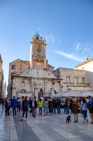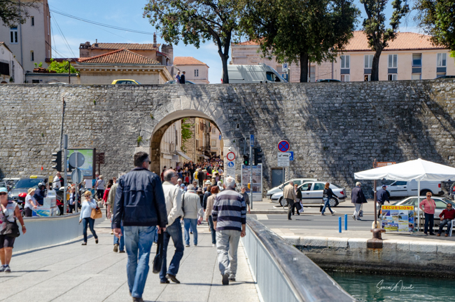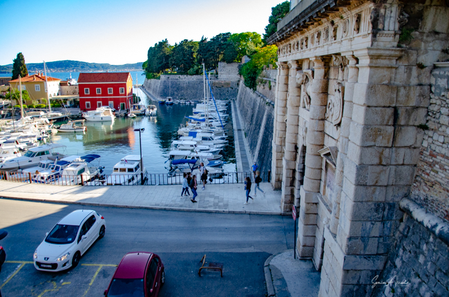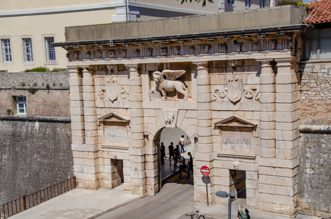 We took our leave of Tamara soon after and since we had some time before we were set to leave, we sat back in the main square, Narodni trg, and had some cold drinks. The square was full of people and buskers playing music. The old guard house stood on one side. City Hall was behind us with reliefs on the sides of the building. The court house was on the other side. We sat there for a while watching the people, listening to the buskers play their music, and killing time. Actually doing the Zadar thing and relaxing. After a while, we walked down to the Bridge Gate.