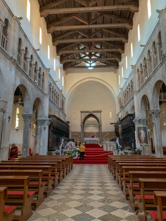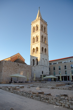 The main structure in the Forum is the Church of St. Donatus, which is also the symbol of Zadar. It is affectionally called the donut, both as a play on the name and because of its unusual cylindrical shape with double interior space. [Philip – I think there was more to the story…???] It was originally dedicated to the Holy Trinity, but later was rededicated to Bishop Donatus from Zadar who had raised the money to build it. The church itself was built with remnants of the Roman forum. For example, in the base of the church, we could see pieces of Roman columns. Inside it is a small space with beautiful old columns in green marble. It is one of only a few buildings from the early Croatian kingdom to have survived the Mongol invasion of the 13th century. Although a church for 200 years, it is now only used for concerts.