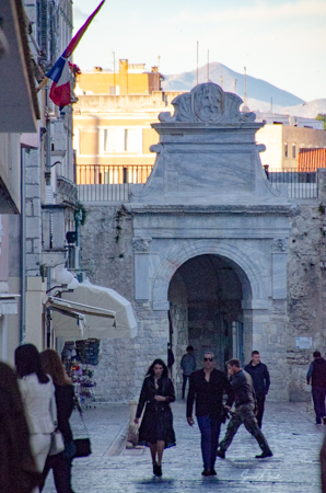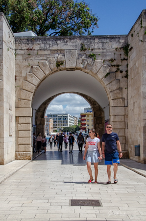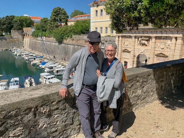 At one time, Zadar was the largest fortified city in Venice’s portfolio. Today the walls and military facilities once devoted to defense are used as parks and backdrops for walking paths. Some sections of the walls were built by the Romans, and some were built by the Venetians much later as fortification against the Turks, who mounted relentless attacks on the city during the Middle Ages. Today only portions of the walls and four gates remain. We already had seen the famous Land Gate. Now we were going to walk through the Bridge Gate.