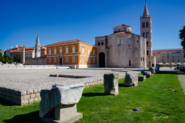 Like all of the Balkans, there is much history here, with traces of early life as far back as the Stone Age. The Romans had a great presence here before the common era when it was called Iadera. Remains of the Roman rule can still be seen throughout the town. More on this below. After the Romans, there were the Byzantines, then Frankish rule briefly, and back to the Byzantines. The first Croatian rulers did not gain control until the 10th century and then, only briefly. The Republic of Venice became rulers here in 998 until 1186, when it acme under the protection of Hungary. This lasted about 20 years and then the Venetians were back. And then the Hungarians again. Back and forth. Back and forth. But it was the Venetians who fostered an environment of art and literature and the Renaissance. Many famous Italian Renaissance figures started out here in Zadar. This all ended in 1797 when Zadar came under Austrain rule, with a brief stint of the French. And then in the 19th century, Zadar was the center of the Croatian movement for culture and national revival. In 1920, Zadar was given to Italy. This led to both good and bad. During WW II Zadar was severely bombed by the Allies (see below). But as we also learned, it was the Italians that gave Zadar everything good.