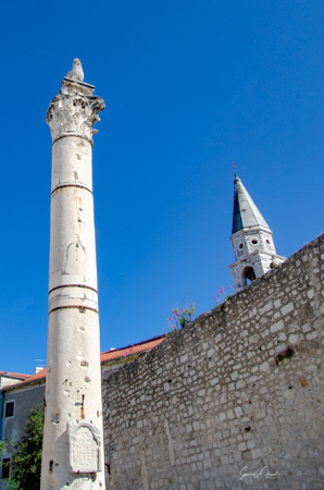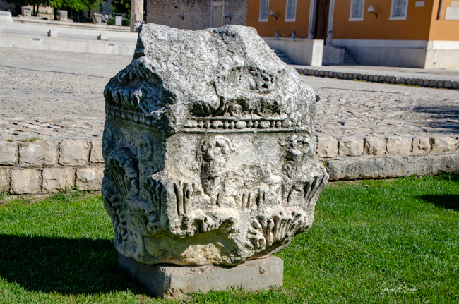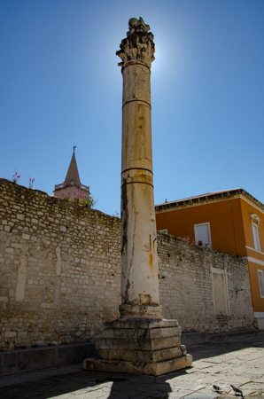 Just in front of the wall of the temple, at the edge of the square, there is one intact Roman column. Back in the Middle Ages, this pillar stroked fear in heart of any wrongdoer. This was the pillar of shame, a place of punishment. Anyone who stole, or killed or was a troublemaker, was chained to the pillar and publicly humiliated, mocked and even whipped. The whole city would come by and watch this public spectacle. It is said that in this way, the people of Iadera stayed honest.