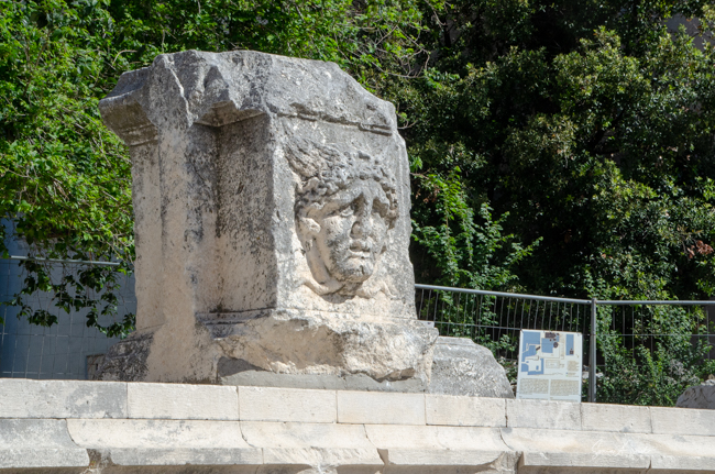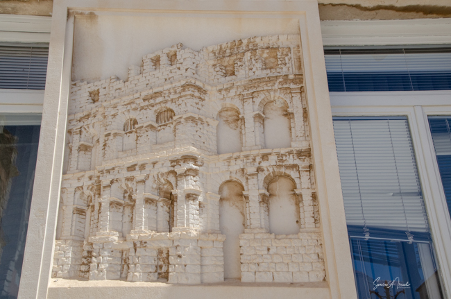 Near the Pillar of Shame was the remains of the Temple from the 1st century BCE that is believed to have been dedicated to Jupiter, Juno and Minerva. On the remaining wall are reliefs of three faces. The center one is Medusa. The two on the sides are Amnon and Jupiter. All three faces were there to scare the people.