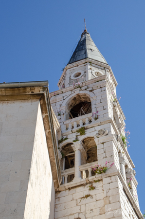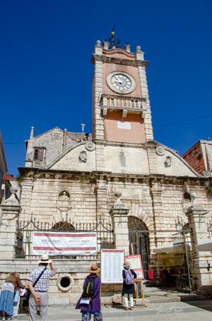 While Catholicism is the most common religion in Zadar, there is one Greek Orthodox church, St. Elias, and this was our next stop. There was a tall bell tower with flowers growing out of it. And next to it was a baroque style church built in the late 18th century. What is most unusual is that this was a medieval Catholic church, but in 1548 the duke of Zadar gave it to the Orthodox Greeks, made up mainly of mercenaries (Stratioti) who had been merchants, soldiers and sailors and who, as defectors, made up the military protecting the borders. The duke allowed the Orthodox Greeks to adapt the church for their religious ceremonies. In 1773 the old church was finally torn down and a new baroque one was built in its place. This was a true example of the coexistence of different cultures, showing us that it was possible back then, and can still be possible today.