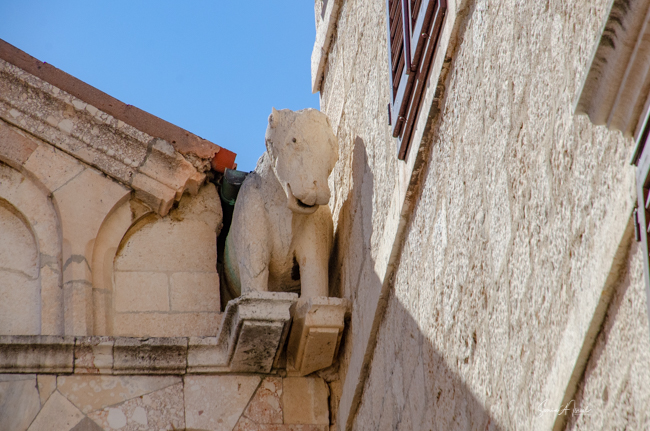 In one corner of the Five Wells Square, there was a large pentagonal tower, the Captain’s Tower, named after the nearby residence of the city captain. We opted not to climb to the top, although I am sure the view would have been wonderful. This is the last tower left, leaning against the old City Walls, of the original 10 towers that were on the margins of the medieval city. It was built by the Venetians to strengthen the city again Turkish attacks.