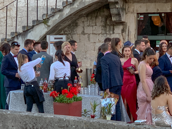 We walked back on the main street, Široka ulica and heard all sorts of shouting and music. There was a large group of young adults, the women dressed in long gowns and the men in suits and ties. They were yelling and singing, accompanied by a guitar. The marched down the street having the best time. I assumed it was a wedding, but no, it turns out they had just graduated and this was their prom.